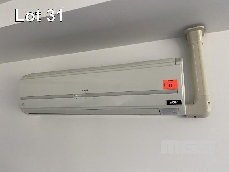 HITACHI WALL MOUNT SPLIT SYSTEM AIR CONDITIONER, MODEL: RAS-70YHA3, WITH WALL CONTROL, (OUTDOOR UNIT LOCATED UNDER STAIRS)