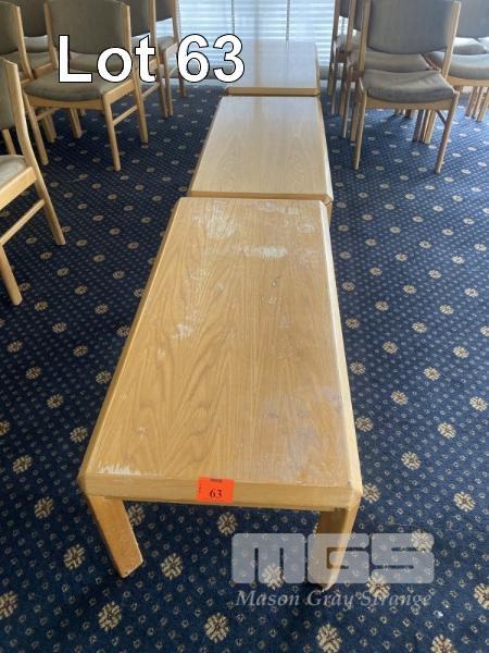3 x TIMBER COFFEE TABLES, 1250 x 570 x 450mm