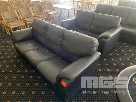 2 SEATER LEATHER SOFA & MATCHING 3 SEATER LEATHER SOFA, BLACK