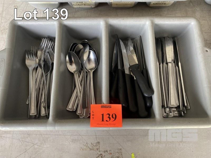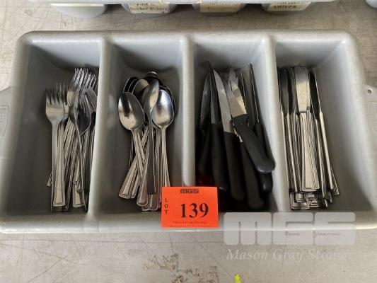 PVC CUTLERY TRAY WITH 20 x STEAK KNIVES, 20 x BUTTER KNIVES, 20 x SPOONS, 20 x FORKS