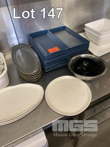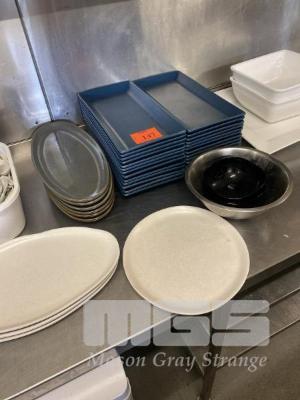 26 x BLUE SERVING PLATES, 370 x 180mm 3 x CREAM TEXTURED SERVING PLATES, 380 x 220mm 6 x GREY/BLUE SERVING PLATES, 390 x 180mm