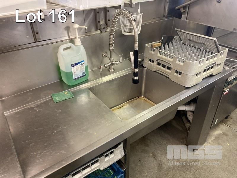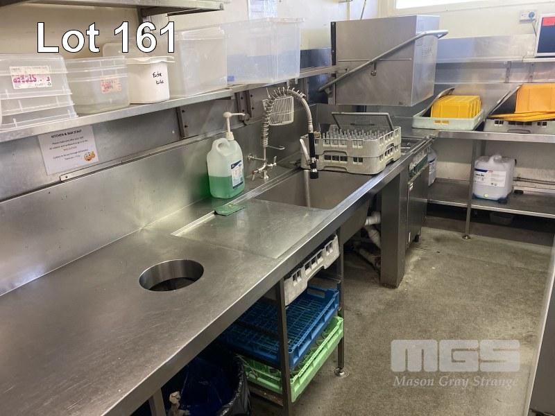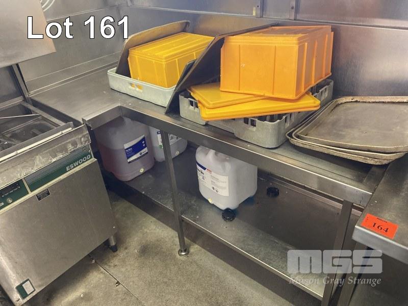 COMPLETE KITCHEN WASH STATION COMPRISING ESWOOD COMMERCIAL DISHWASHER, MODEL: ES-32, 415v WITH CHEMFORM SYSTEM STAINLESS STEEL INFEED BENCH 3500 x 730mm,WITH DEEP BOWL SINK, HOT/COLD DISH RINSING TAP, DISH WASHER TRAY STORAGE L SHAPE OUT FEED STAINLESS STEEL BENCH 1870 x 630mm, 2 TIER 3 x STAINLESS STEEL DRYING RACKS