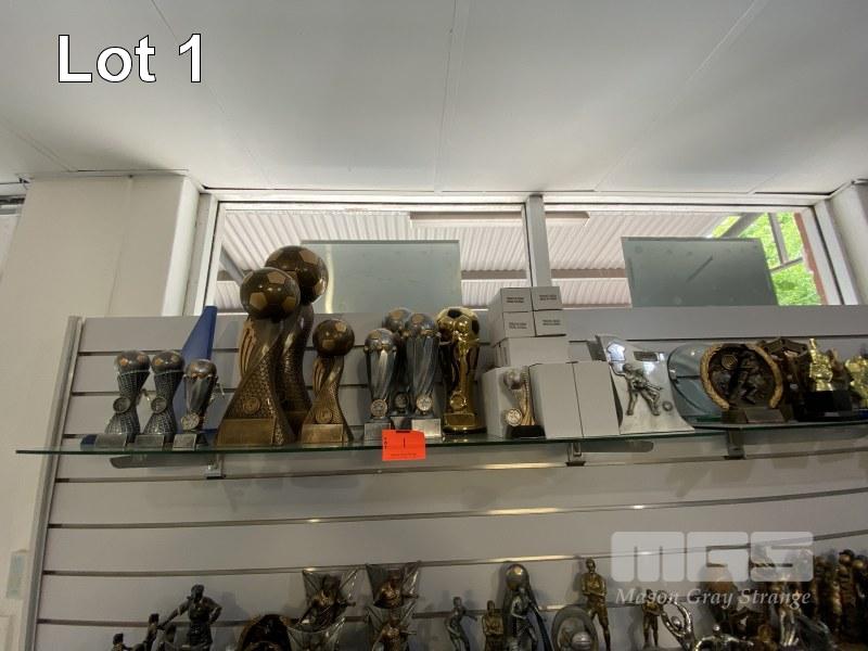 ASSORTED SOCCER TROPHYS, APPROX 22, CONTENTS OF 1 SHELF
