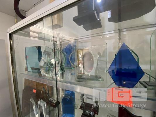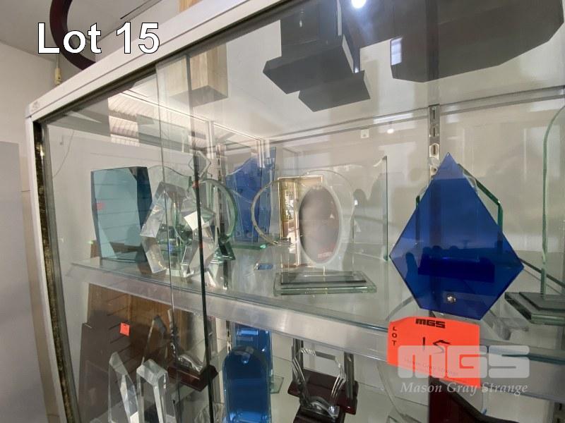 ASSORTED GLASS TROPHIES x 19, CONTENTS TOP CENTRE CABINET