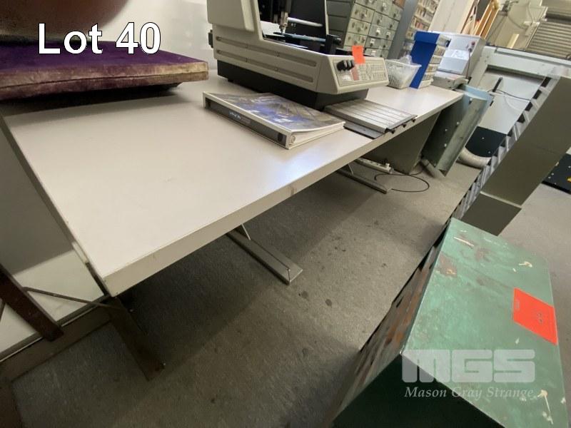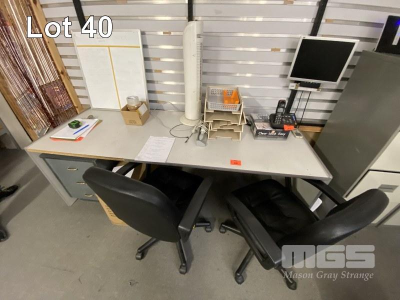 GREY LAMINATE DESK, 2100 x 800mm, 2 x OFFICE CHAIRS, 2 x FILING CABINETS, ELECRTIC HEATER, 3 DRAWER UNDER DESK UNIT