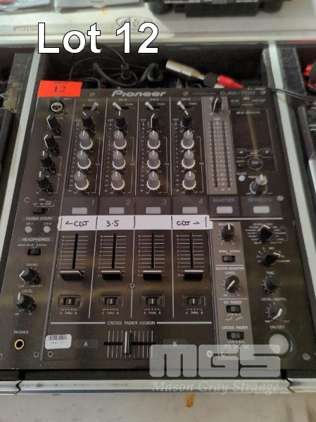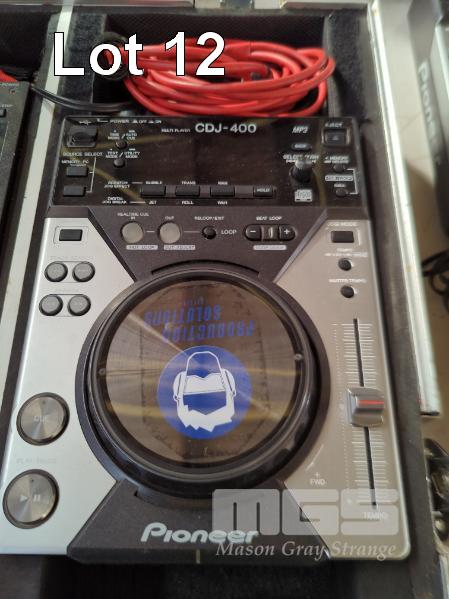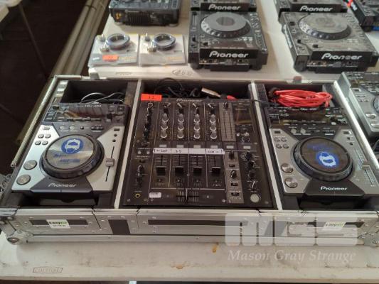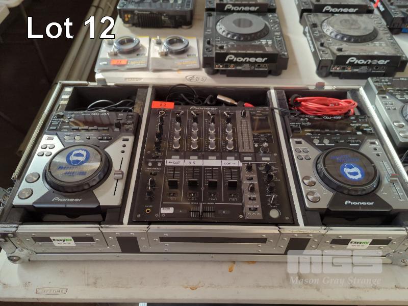 PIONEER DJ CONSOLE, PIONEER CASE ON WHEELS, DJM-700 MIXER AND 2 X CDJ-400 MULTIPLAYERS.