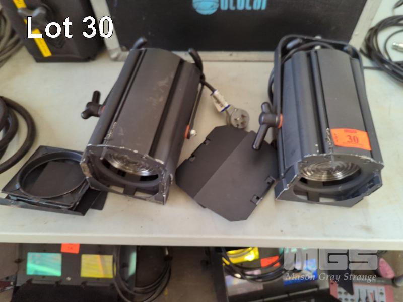 2 X 650W FRESNEL LAMPS WITH BARN DOORS.