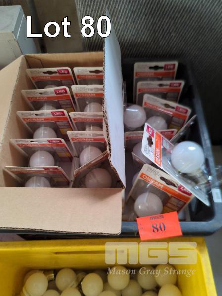 QUANTITY OF FESTOON LED BULBS - OSRAM B22D BAYONET CAP "LED VALUE CLASSIC P 25" LIGHT GLOBES - 250 LM/2700K WARM WHITE. 40 APPROX. NEW IN PACKAGE (1 X CRATE).