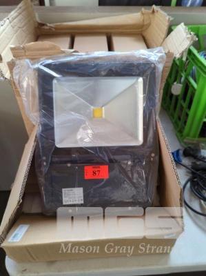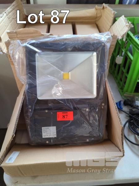 4 X 100W LED FLOODLIGHTS - 380 X 285 X 80 MM (L W H), WARM WHITE. NEW IN BOX.