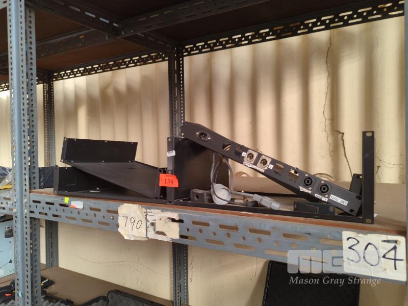 ASSORTED RACK COMPONENTS, TV WALL MOUNT ETC (3 X BAYS).