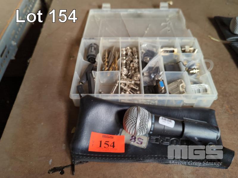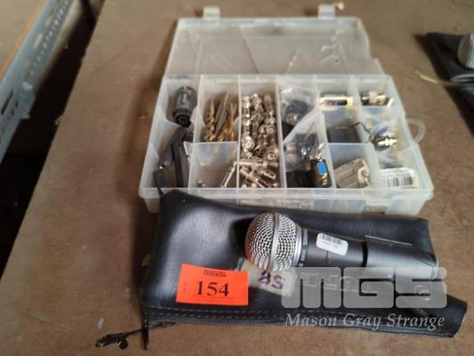 SHURE SM58 MICROPHONE WITH COMPARTMENT STORAGE BOX & CONTENTS.