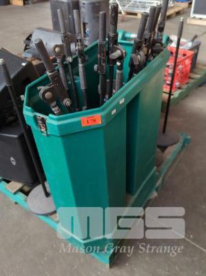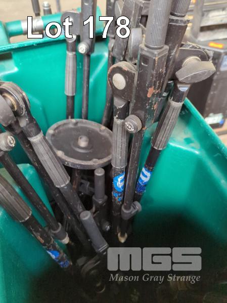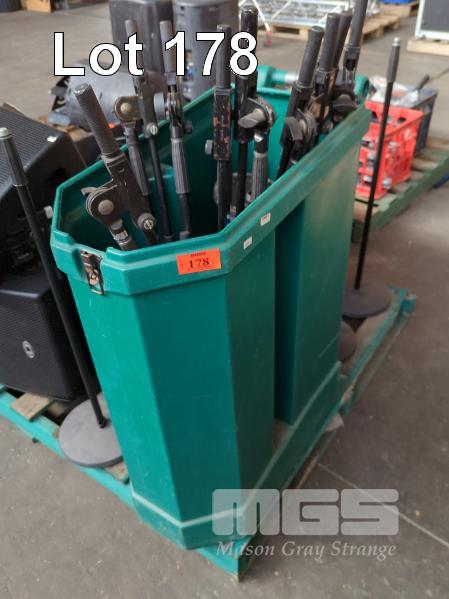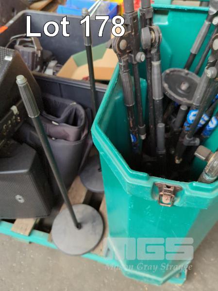 18 X ASSORTED MICROPHONE STANDS TRANSPORT TUB.
