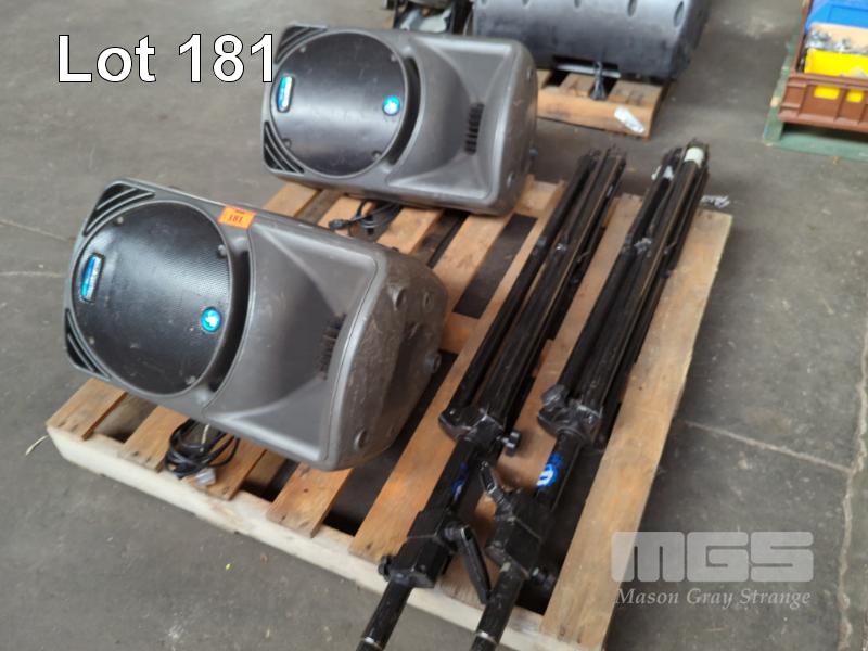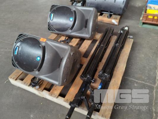 2 X MACKIE SRM459 ACTIVE SPEAKERS & STANDS.