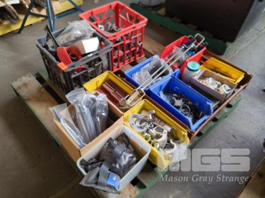 ASSORTED STAGE TRUSS & OTHER ACCESSORIES INCLUDING COUPLERS, BRACKETS, BALLAST BAGS, CATENERY WIRE AND CHAIN, BOLTS, SPIKES, CARPET SQUARES ETC (1 X PALLET)