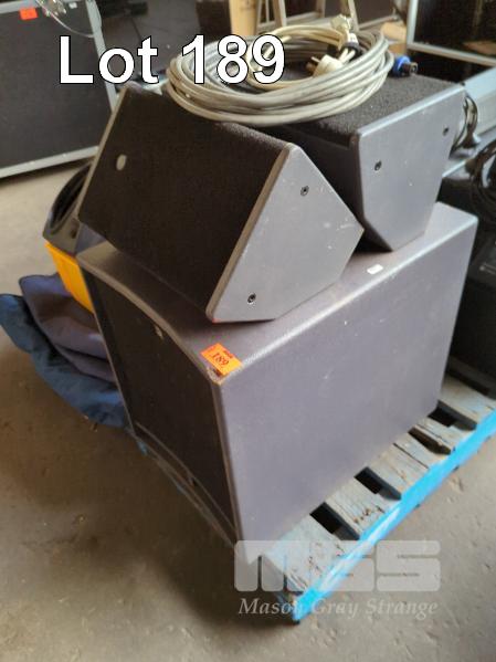 2 X QUEST "Q MOTION" L600A POWERED SUB WITH PAIR OF "Q MOTION" L108 PASSIVE TOPS (SATELLITE SYSTEM)