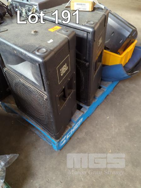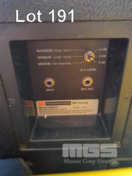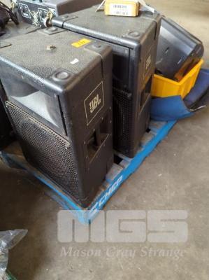 2 X JBL MR SERIES SPEAKERS (MR822), SPEAKER COVER BAGS AND SPEAKER PARTS.