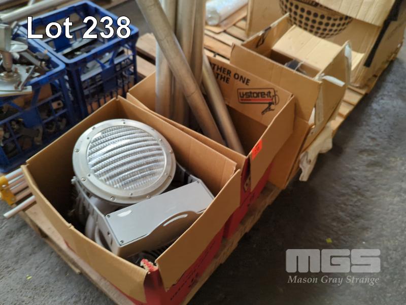 4 X SPOTLIGHTS. 1@ HELYOS G4 SUPER SPOT & 3 @ DIAMANTE SPOTLIGHTS. 6 X MOUNTING POLES & BRACKETS.