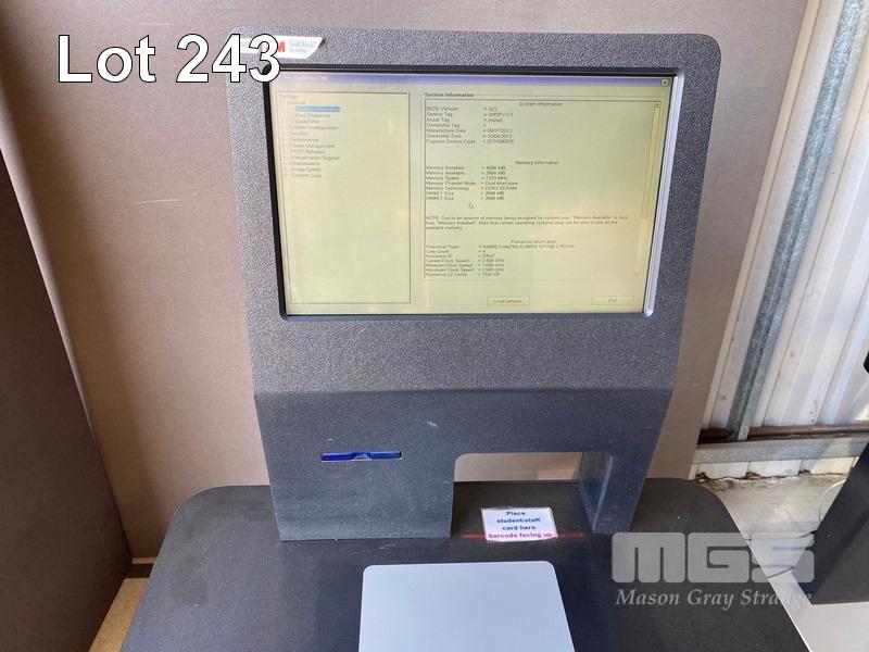 KIOSK, 3M SELFCHECK SYSTEM, MODEL 8420 (BLACK), INCLUDING DELL OPTIPLEX 790 PC, CORE i5 2400S @ 2.5GHz, 4GB RAM, 250GB HDD S/N:2MSFVV1 WITH 19" TOUCHSCREEN DISPLAY, DOCKET PRINTER, BARCODE SCANNER & KEY (NO SOFTWARE) (APPROX SIZE 156 x 85 x 82cm) S/N:84200362