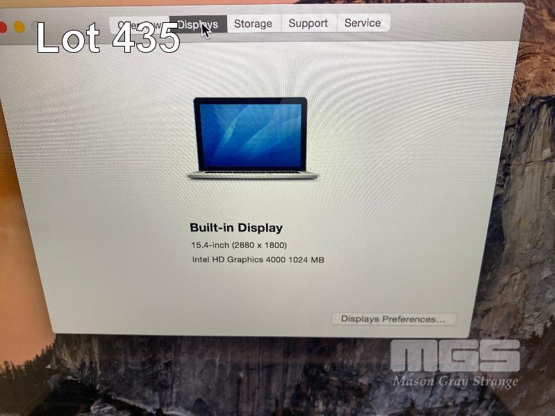 LAPTOP, APPLE MACBOOK PRO (A1398), CORE i7 3740QM (3RD GEN) @ 2.7GHz, 16GB DDR3 RAM, 512GB SSD, 15.4" WIDESCREEN (2880x1800), INTEL HD GRAPHICS 4000, Wi-Fi, MAC OS 10.04 INSTALLED (NO POWER SUPPLY) S/N:C02L41GTFFT1