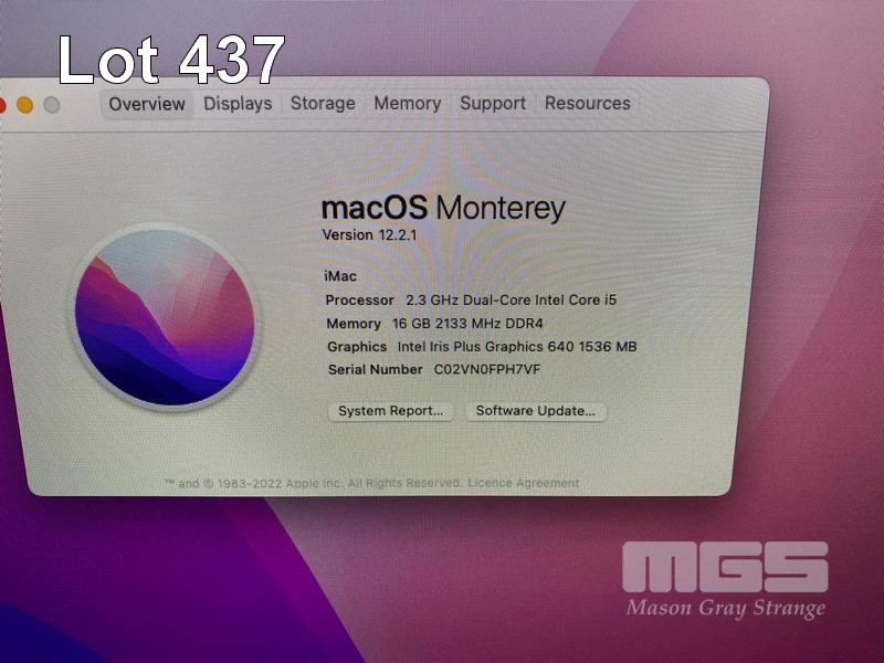 APPLE iMAC (A1418), CORE i5 7360U (7TH GEN) @ 2.3GHz, 16GB DDR4 RAM, 256GB SSD, BUILT-IN 21.5" DISPLAY (1920x1080), INTEL IRIS PLUS GRAPHICS 640, Wi-Fi, MAC OS 12 INSTALLED (NO KEYBOARD, NO MOUSE) S/N:C02VN0FPH7VF