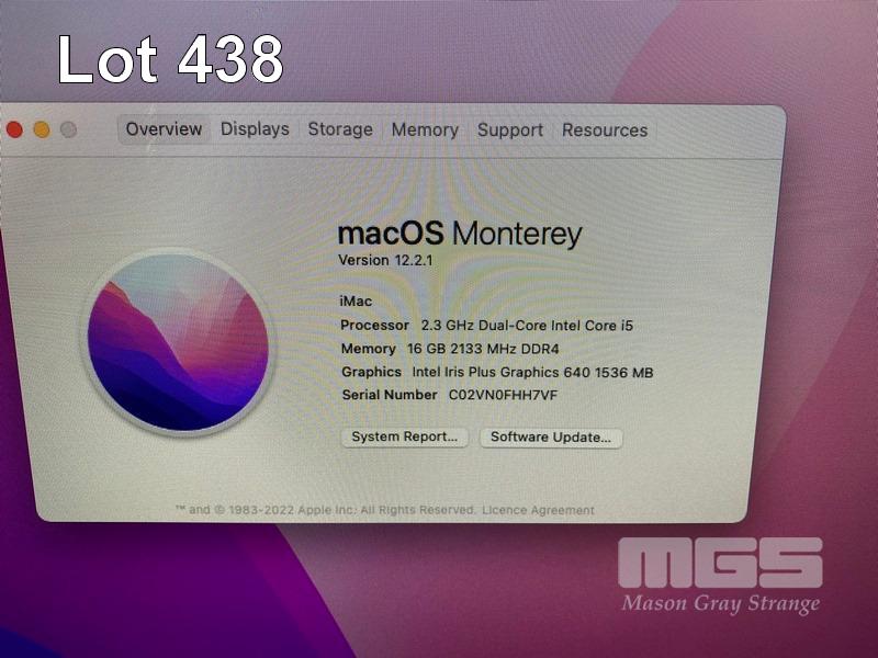 APPLE iMAC (A1418), CORE i5 7360U (7TH GEN) @ 2.3GHz, 16GB DDR4 RAM, 256GB SSD, BUILT-IN 21.5" DISPLAY (1920x1080), INTEL IRIS PLUS GRAPHICS 640, Wi-Fi, MAC OS 12 INSTALLED (NO KEYBOARD, NO MOUSE) S/N:C02VN0FHH7VF