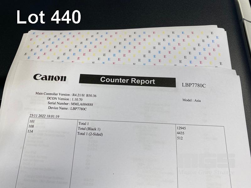 PRINTER, CANON imageCLASS LBP7780Cx COLOUR LASER, USB, NETWORK, 8,510 COLOUR & 4,435 B&W PAGES (TEST PAGE ATTACHED) S/N:MMLA004888