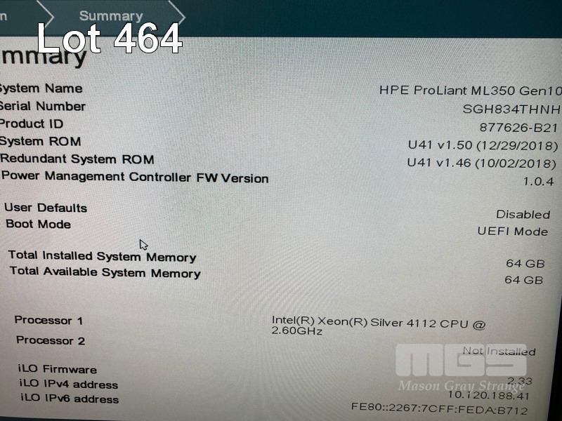 TOWER SERVER, HP ENTERPRISE PROLIANT ML350 Gen10, XEON SILVER 4112 @ 2.6GHz, 64GB ECC DDR4 RAM, 6 x 1.2TB SAS HDD, 2 x 600GB SAS HDD, 2 x 500W PSU S/N:SGH834THNH