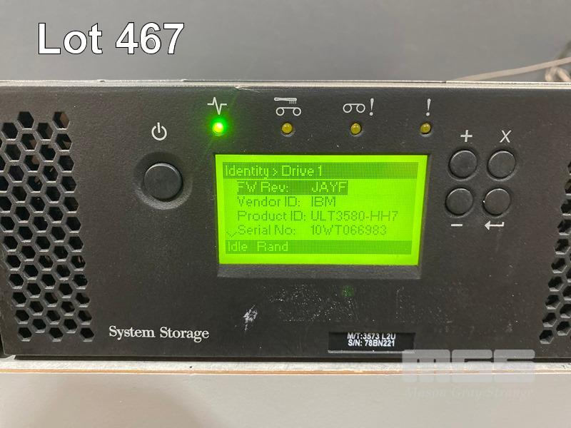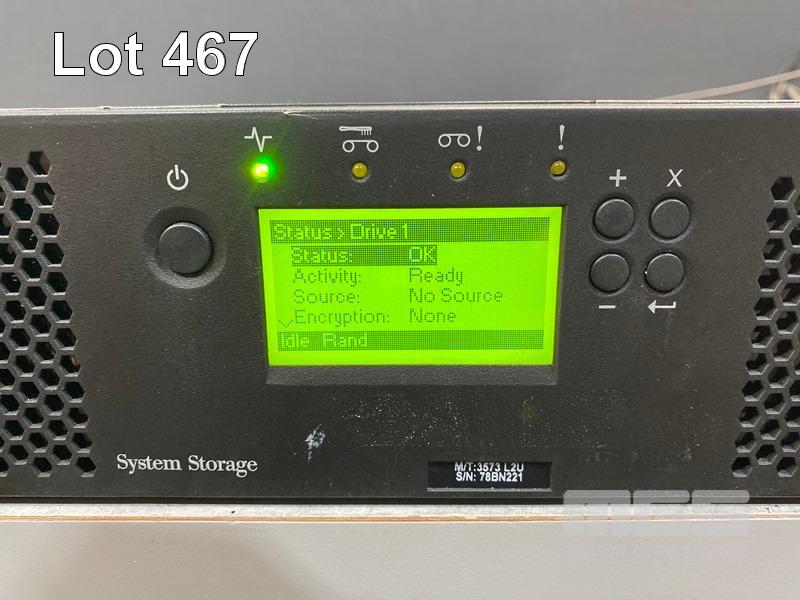 RACKMOUNT TAPE LIBRARY, IBM SYSTEM STORAGE TS3100, TYPE 3573-2UL, SAS, IBM ULT3580-HH7 TAPE DRIVE, MODEL 18R1108 WITH 5 x LTO5 TAPE CARTRIDGES & RAILS (NO CABLES)