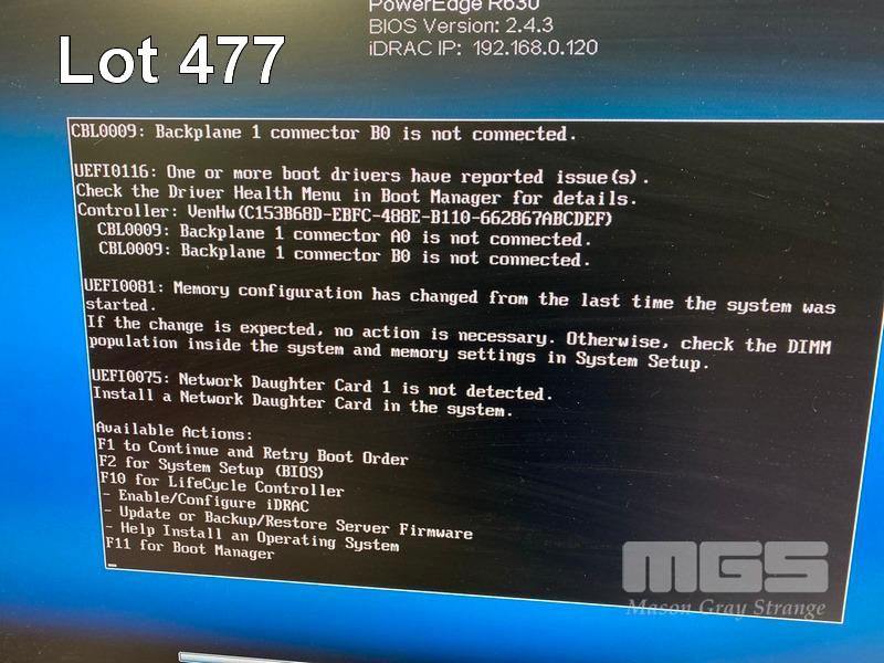 RACKMOUNT SERVER, DELL POWEREDGE R630, 1U, 2 x XEON E5-2620 v3 @ 2.4GHz, 32GB ECC DDR4 RAM, 2 x 146GB SAS HDD, DVD-RW, 2 x 750W PSU (NOTE: MESSAGE BACKPLANE NOT CONNECTED, NO NETWORK CARD) (NO CABLES) S/N:3LFRY42