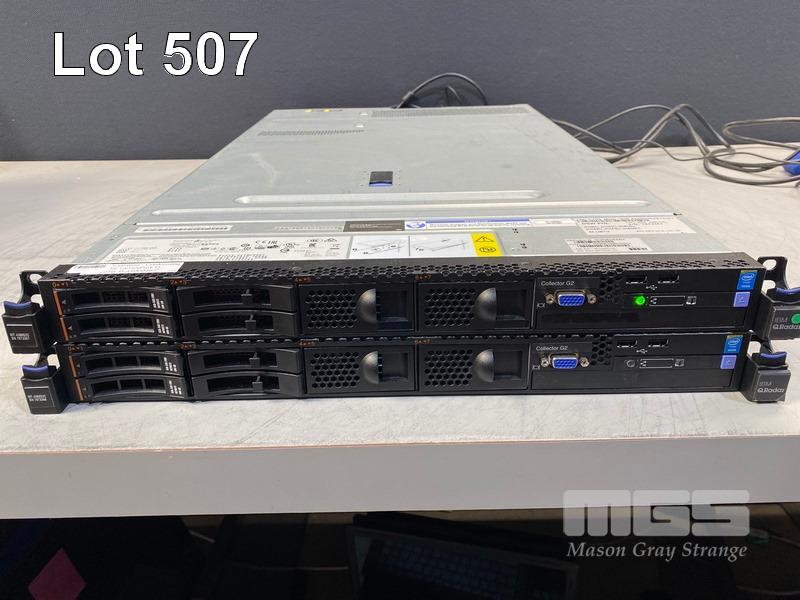 2 x RACKMOUNT SERVERS, IBM Q RADAR COLLECTOR G2, 1U, XEON E5-2630 v2 @ 2.6GHz, 16GB ECC DDR3 RAM, 2 x 600GB SAS HDD, 2 x 550W PSU (NOTE: 1 x FAULTY - BOARD ERROR) (NO CABLES) S/N:E2GXB24