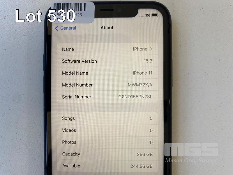 APPLE iPHONE 11, 256GB, BLACK, MODEL MHDA3X/A (NO CHARGER, NO CABLE) S/N:G0ND155PN73L