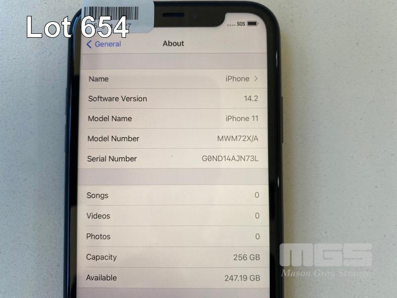 APPLE iPHONE 11, 256GB, BLACK, MODEL MHDA3X/A (NO CHARGER, NO CABLE) S/N:G0ND14AJN73L