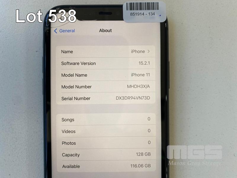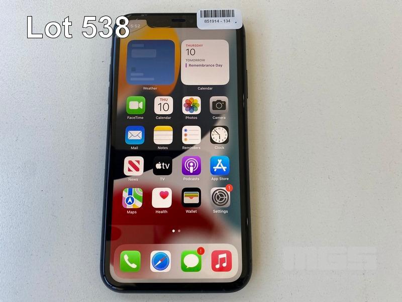 APPLE iPHONE 11, 128GB, BLACK, MODEL MHDA3X/A (NO CHARGER, NO CABLE) (NOTE: DAMAGED CORNER OF SCREEN) S/N:DX3DR94VN73D