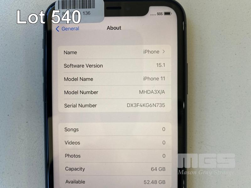 APPLE iPHONE 11, 64GB, BLACK, MODEL MHDA3X/A (NO CHARGER, NO CABLE) S/N:DX3F4KG6N735