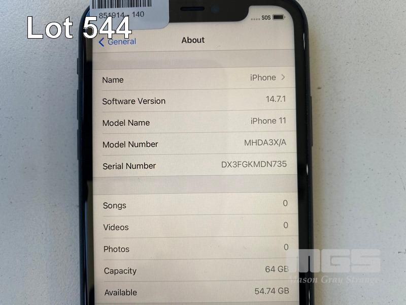 APPLE iPHONE 11, 64GB, BLACK, MODEL MHDA3X/A (NO CHARGER, NO CABLE) S/N:DX3FGKMDN735