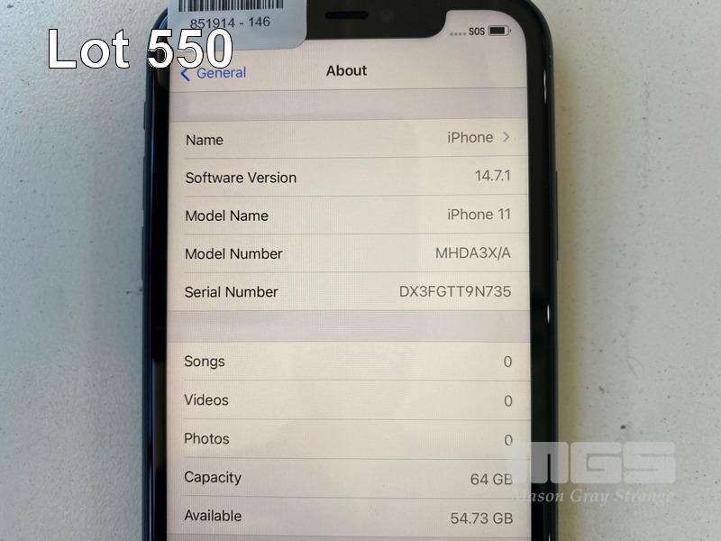 APPLE iPHONE 11, 64GB, BLACK, MODEL MHDA3X/A (NO CHARGER, NO CABLE) S/N:DX3FGTT9N735