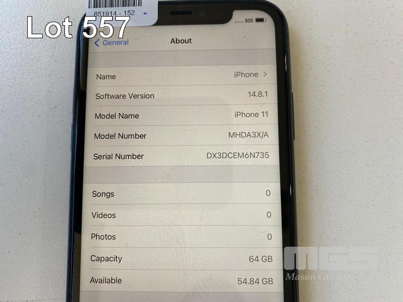 APPLE iPHONE 11, 64GB, BLACK, MODEL MHDA3X/A (NO CHARGER, NO CABLE) (NOTE: MAJOR SCRATCHES ON SCREEN) S/N:DX3DCEM6N735