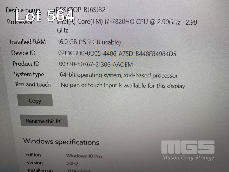 LAPTOP, DELL PRECISION 3520 WORKSTATION, CORE i7 7820HQ (7TH GEN) @ 2.9GHz, 16GB DDR4 RAM, 512GB M.2 SSD, 15.6" WIDESCREEN (1920x1080), INTEL HD GRAPHICS 630, 2GB NVIDIA QUADRO M620 VIDEO, Wi-Fi, BLUETOOTH, WINDOWS 10 PRO INSTALLED & POWER SUPPLY S/N:J0Q1QH2
