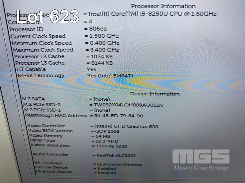 TABLET PC, DELL LATITUDE 5290, CORE i5 8250U (8TH GEN) @ 1.6GHz, 8GB DDR3 RAM, 512GB NVMe M.2 SSD, 12.3" TOUCHSCREEN (1920x1080), INTEL UHD GRAPHICS 620, Wi-Fi, BLUETOOTH, CELLULAR, WINDOWS 10 PRO INSTALLED, KEYBOARD & (GENERIC) USB-C POWER SUPPLY S/N:5838M13