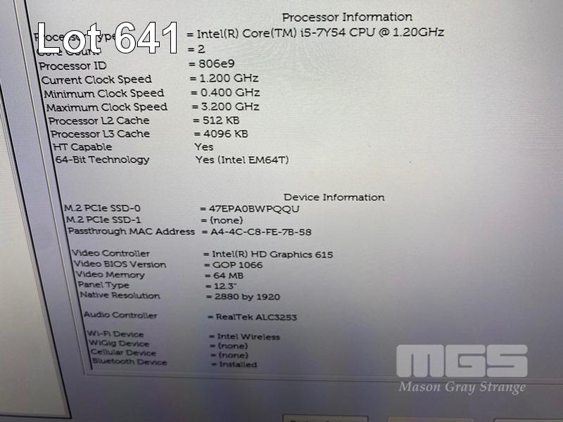 TABLET PC, DELL LATITUDE 7285, CORE i5 7Y54 (7TH GEN) @ 1.2GHz, 8GB DDR3 RAM, 256GB NVMe M.2 SSD, 12.3" TOUCHSCREEN (2880x1920), INTEL HD GRAPHICS 615, Wi-Fi, BLUETOOTH, WINDOWS 10 HOME INSTALLED, KEYBOARD & USB-C POWER SUPPLY (NOTE: BATTERY NOT CHARGING) S/N:3BR24M2