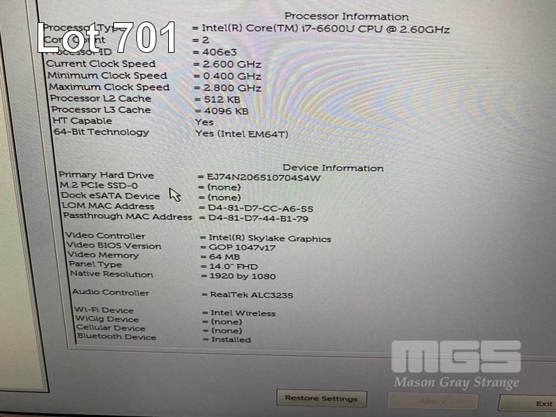 LAPTOP, DELL LATITUDE E7470, CORE i7 6600U (6TH GEN) @ 2.6GHz, 16GB DDR4 RAM, 512GB M.2 SSD, 14" WIDESCREEN (1920x1080), INTEL SKYLAKE GRAPHICS, Wi-Fi, BLUETOOTH, WINDOWS 10 HOME INSTALLED, DOCKING STATION & POWER SUPPLY (NOTE: SWOLLEN BATTERY) S/N:2NLG4H2