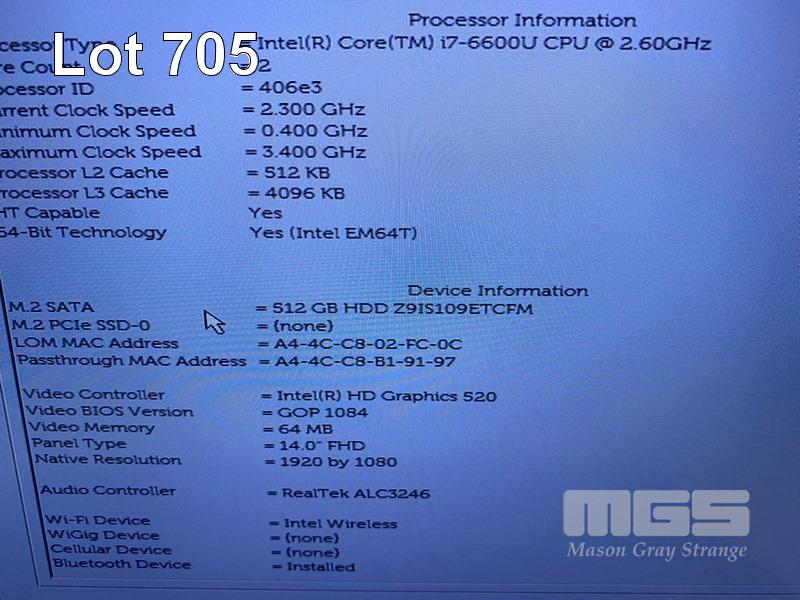 LAPTOP, DELL LATITUDE 7480, CORE i7 6600U (6TH GEN) @ 2.6GHz, 16GB DDR4 RAM, 512GB M.2 SSD, 14" WIDESCREEN (1920x1080), INTEL HD GRAPHICS 520, Wi-Fi, BLUETOOTH, WINDOWS 10 HOME INSTALLED & POWER SUPPLY (NOTE: NO BATTERY, WHITE SPOT SCREEN BLEMISH) S/N:109B7H2