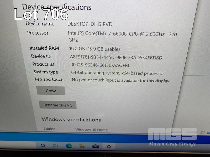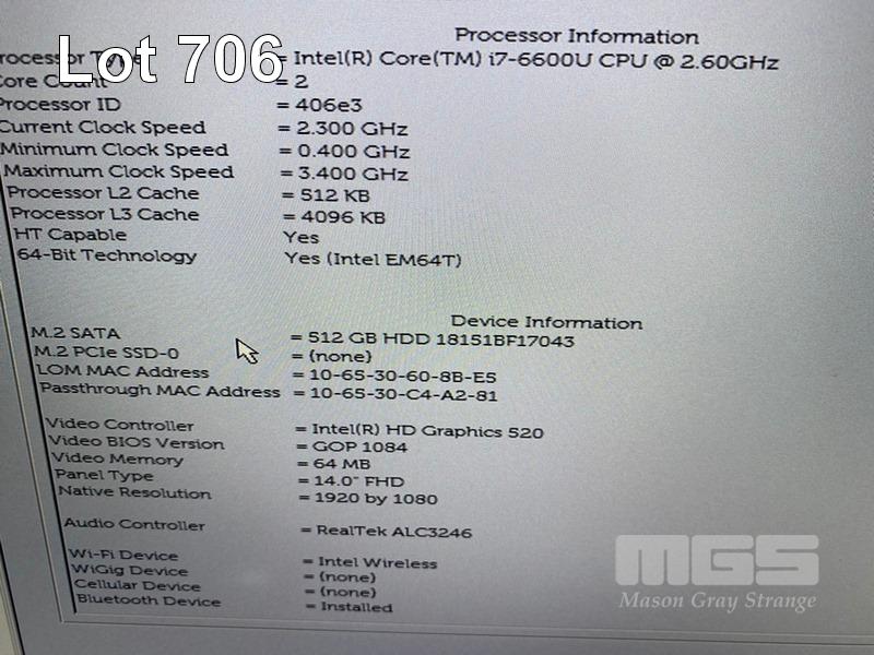 LAPTOP, DELL LATITUDE 7480, CORE i7 6600U (6TH GEN) @ 2.6GHz, 16GB DDR4 RAM, 512GB M.2 SSD, 14" WIDESCREEN (1920x1080), INTEL HD GRAPHICS 520, Wi-Fi, BLUETOOTH, WINDOWS 10 HOME INSTALLED & POWER SUPPLY (NOTE: NO BATTERY, WHITE SPOT SCREEN BLEMISH) S/N:D8P5VP2