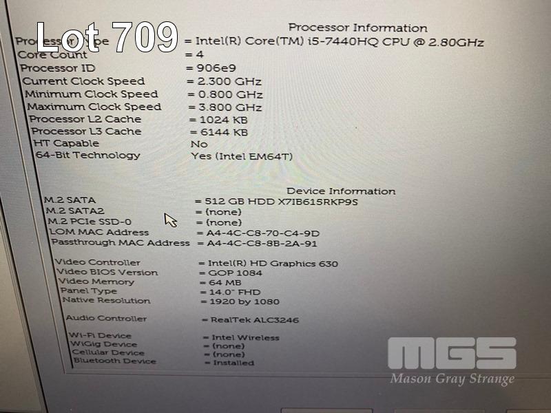 LAPTOP, DELL LATITUDE 5480, CORE i5 7440HQ (7TH GEN) @ 2.9GHz, 8GB DDR4 RAM, 512GB M.2 SSD, 14" WIDESCREEN (1920x1080), INTEL HD GRAPHICS 630, Wi-Fi, BLUETOOTH, WINDOWS 10 HOME INSTALLED & POWER SUPPLY (NOTE: WHITE SPOT SCREEN BLEMISHES IN BOTTOM CORNERS) S/N:5Y7D3M2