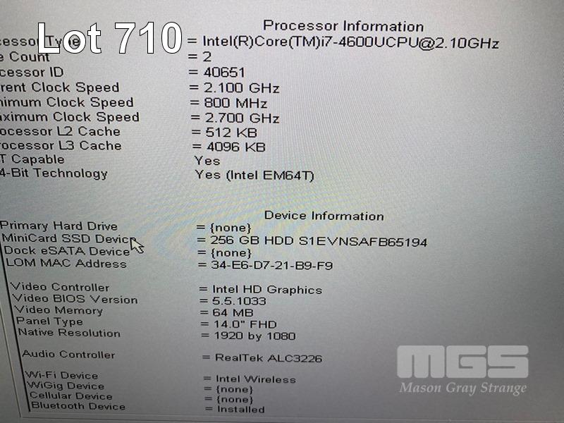 LAPTOP, DELL LATITUDE E7440, CORE i7 4600U (4TH GEN) @ 2.1GHz, 16GB DDR3 RAM, 256GB SSD, 14" WIDESCREEN (1920x1080), INTEL HD VIDEO, Wi-Fi, BLUETOOTH, WINDOWS 10 HOME INSTALLED, DOCKING STATION & POWER SUPPLY S/N:JXP4K32