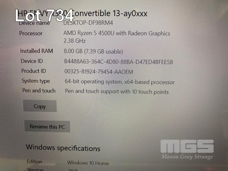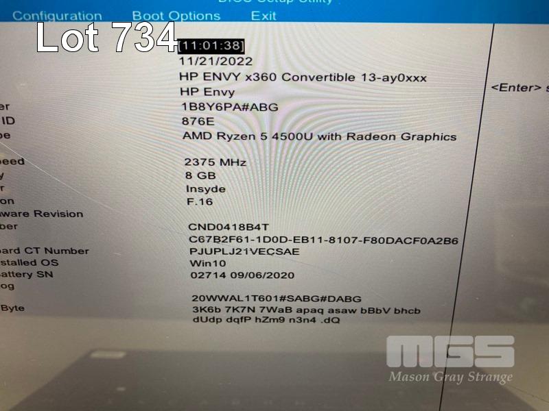 LAPTOP, HP ENVY x360 (1B8Y6PA), AMD RYZEN 5 4500U WITH RADEON GRAPHICS @ 2.3GHz, 8GB DDR4 RAM, 512GB NVMe M.2 SSD, 13.3" TOUCHSCREEN (1920x1080), Wi-Fi, BLUETOOTH, WINDOWS 10 HOME INSTALLED & POWER SUPPLY (NOTE: DAMAGED SCREEN & CASING) S/N:CND0418B4T