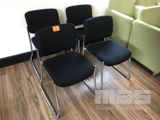 SET OF 4 VISITORS CHAIRS, CHROME FRAMED, BLACK FABRIC UPHOLSTERED