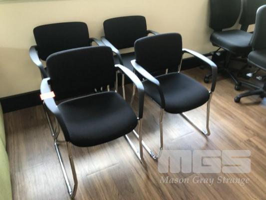 SET OF 4 VISITORS ARMCHAIRS, CHROME FRAMED, BLACK FABRIC UPHOLSTERED