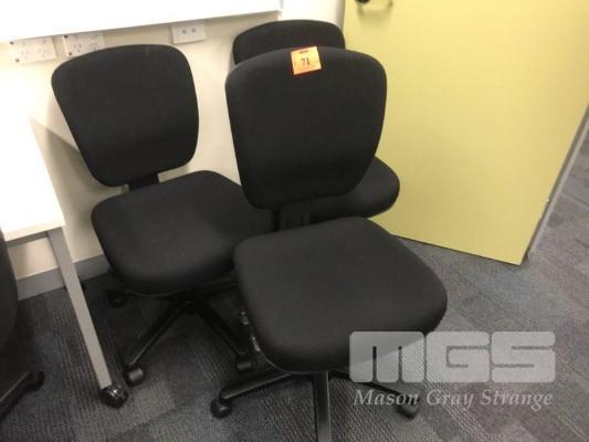 3 X DUEL GAS LIFT OFFICE CHAIR, BLACK FABRIC UPHOLSTERED