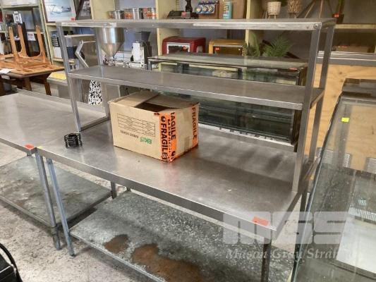STAINLESS STEEL TOP PREP BENCH, 150 x 70cm WITH 2 TIER OVERSHELF